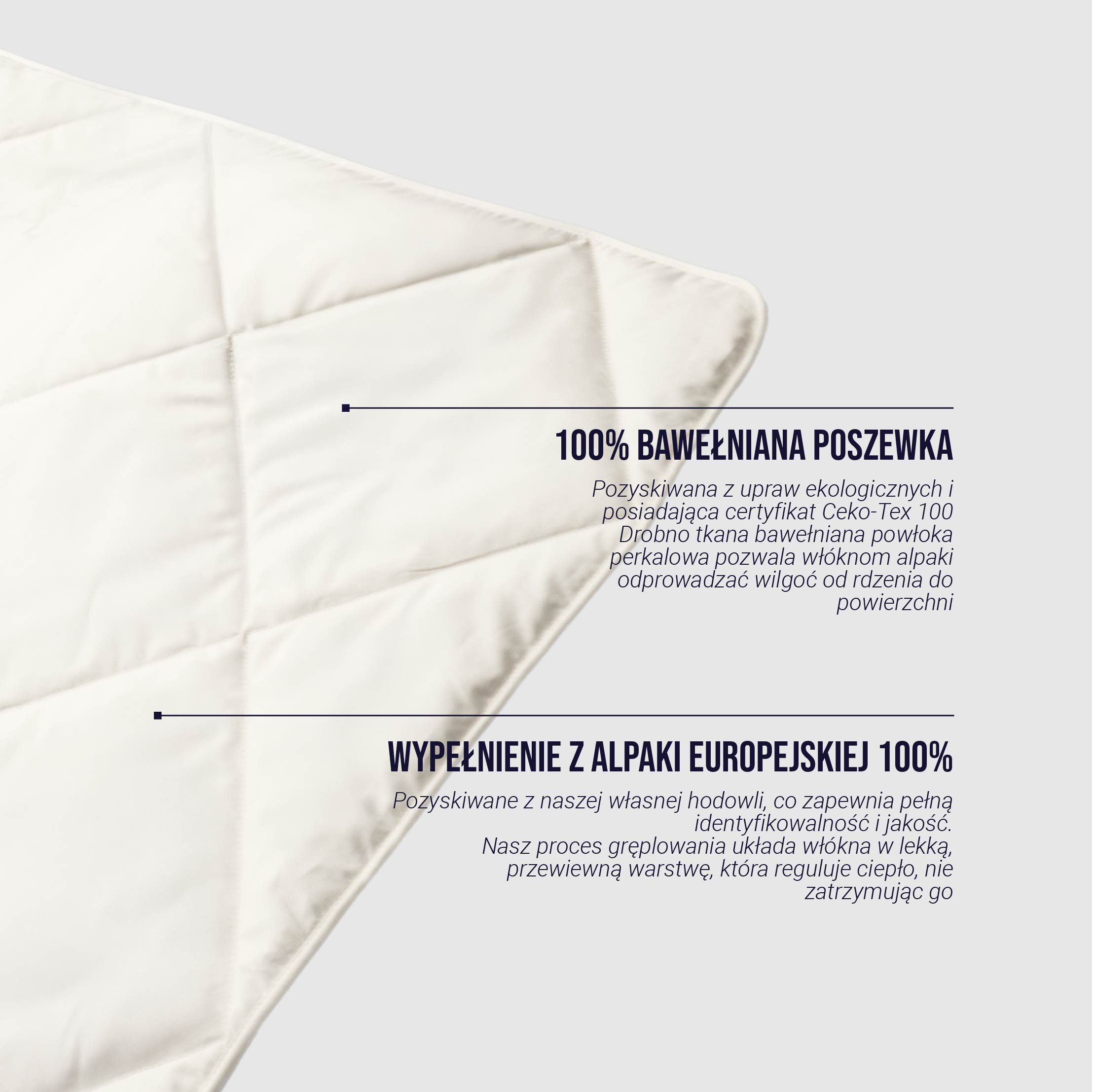 Mamy nadzieję, że już wkrótce będziemy mogli zaproponować Państwu pościel idealnie dopasowaną do naszych produktów. Do tego czasu obowiązuje prosta zasada: aby w pełni zachować wyjątkowe właściwości wełny alpaki, należy stosować wyłącznie naturalne poszewki na kołdrę.