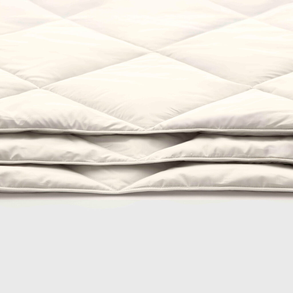 Nous espérons pouvoir bientôt vous fournir le linge de lit le plus adapté possible à nos produits, en attendant la règle à respecter est simple : afin de préserver les excellentes vertus de la laine d’alpaga il faudra utiliser une housse de couette naturelle. Le satin ou la percale de coton conviennent parfaitement, vous pouvez également utiliser des matériaux plus chauds comme la soie en hiver, et plus légers comme le lin pour l’été.